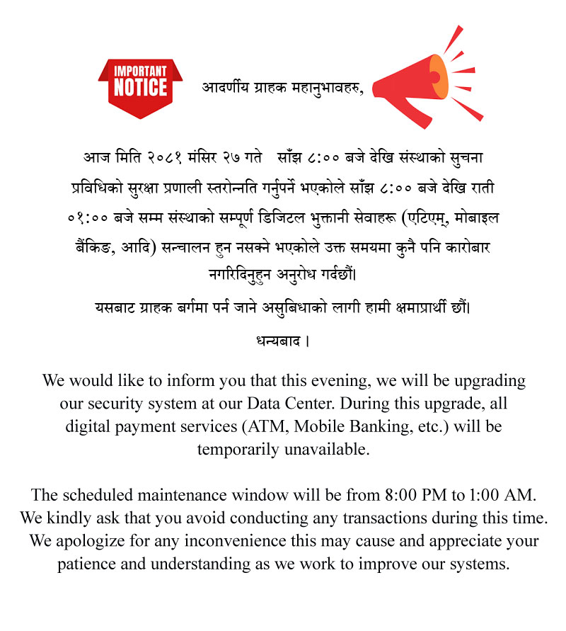धितोमा रहेको जायजेथा लिलाम बिक्री गर्नेबारे १५ दिने अत्यन्त जरुरी सूचना (Published in Dainik Nepalgunj)