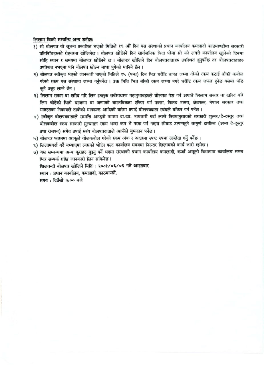 लीलाम बिक्री सम्बन्धि अन्य सर्तहरु