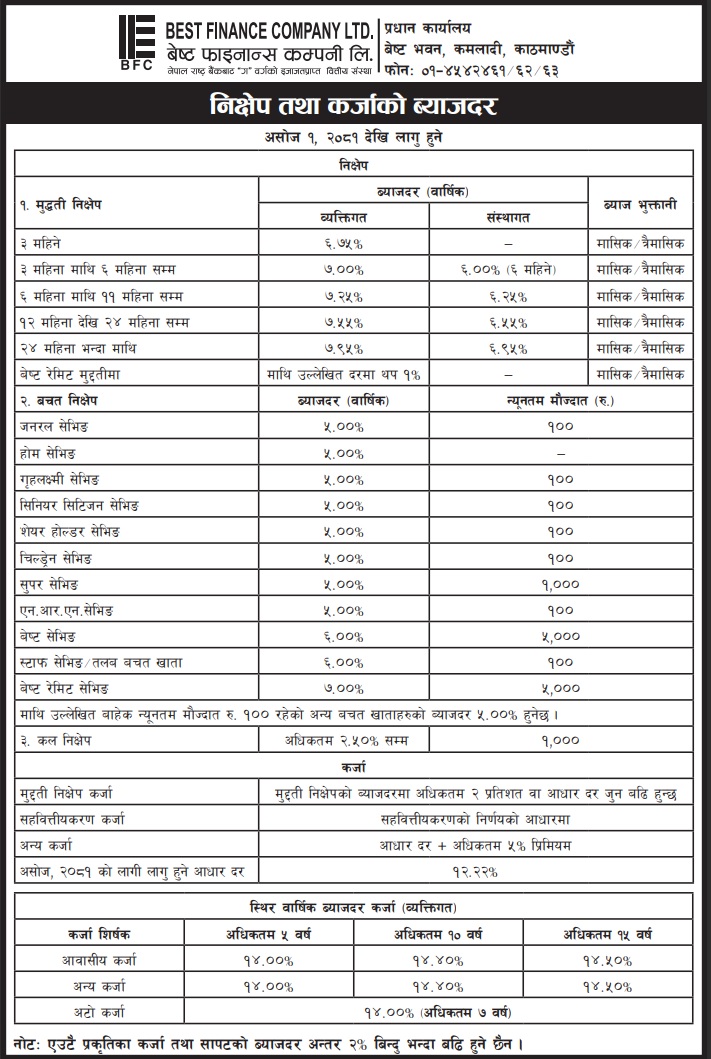 Interest Rate Effective from 1 Ashoj 2081 BS