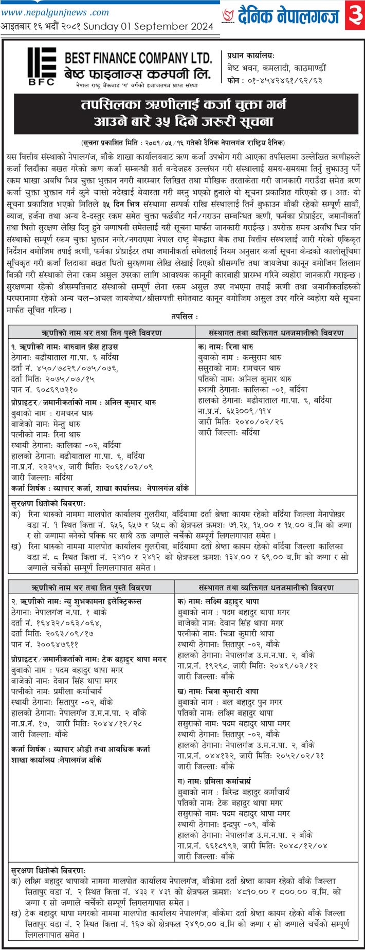 ३५ दिने जरुरी सूचना Published In Dainik Nepalgunj