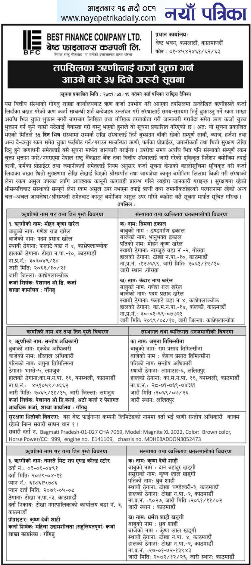 ३५ दिने जरुरी सूचना Published In NayanPatrika National Daily