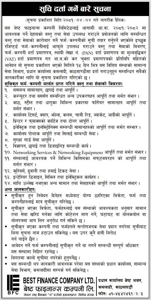 ३५ दिने जरुरी सूचना Published In Chitwan Post Daily