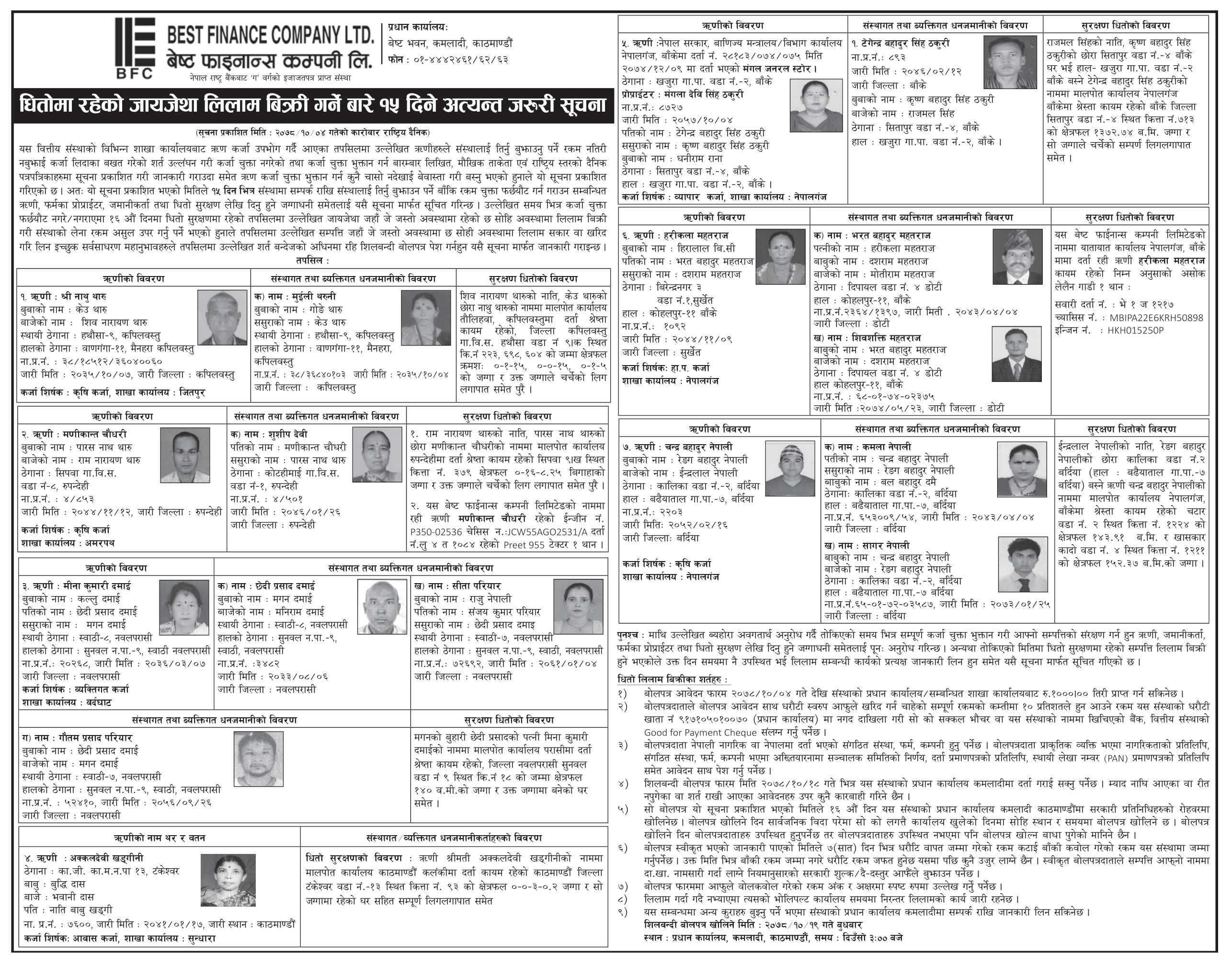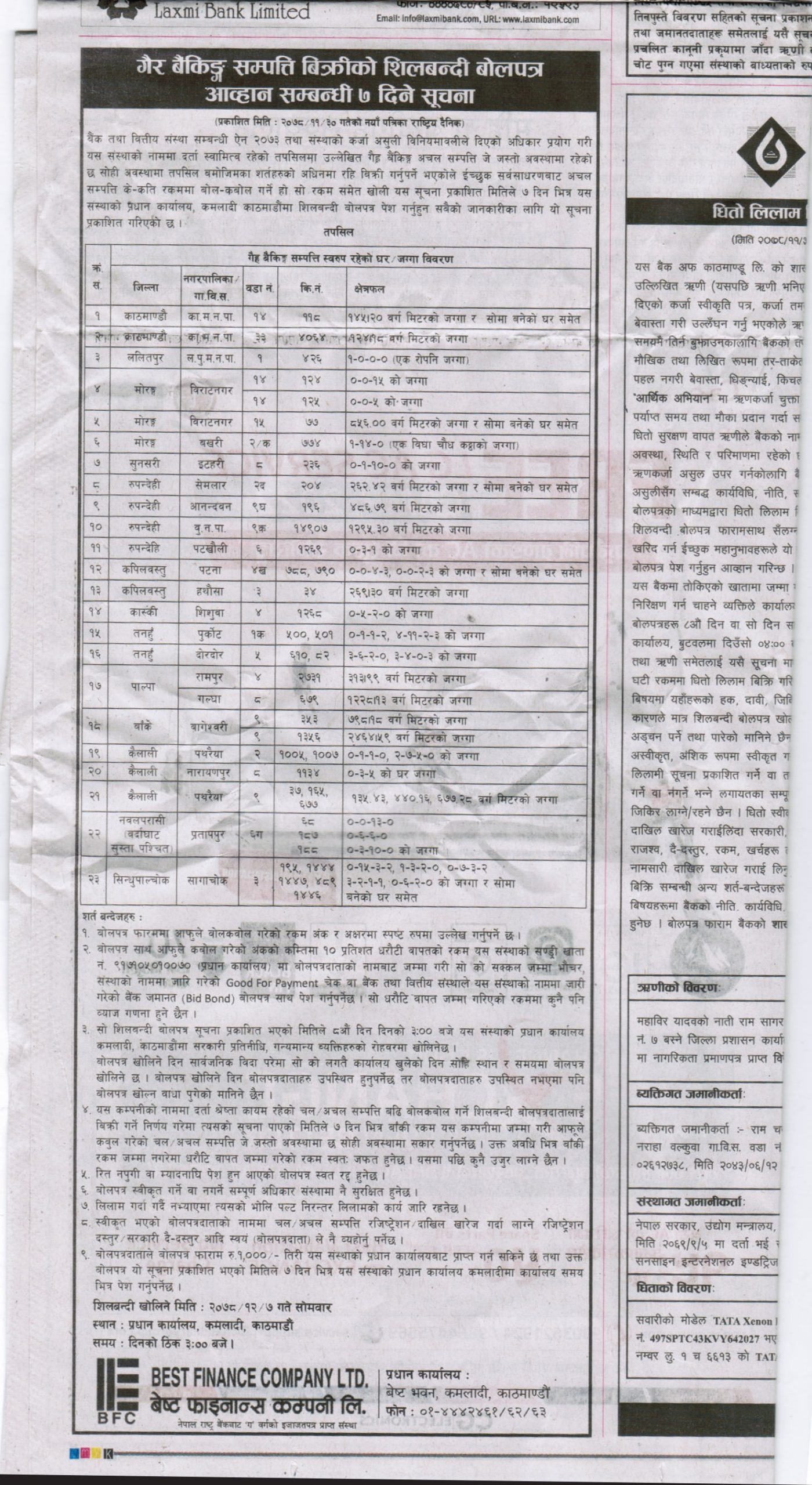 15 Days Auction Notice