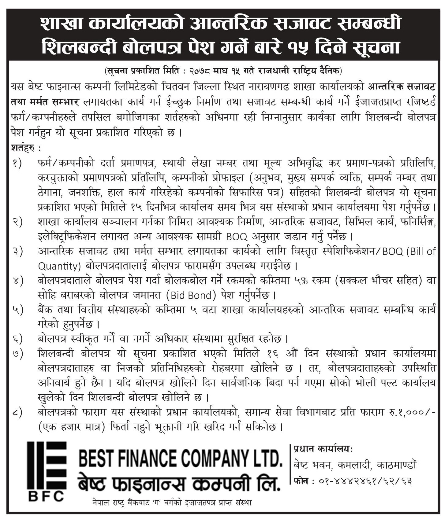 SEALED BID FOR BRANCH INTERIOR DECORATION