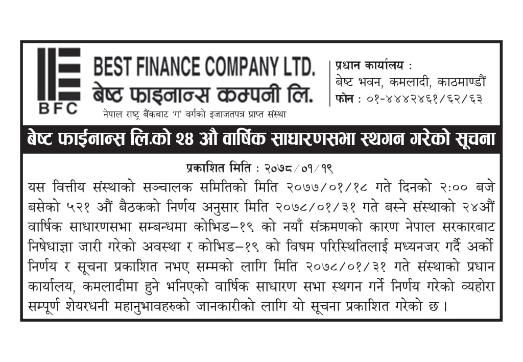 24th AGM Cancelation Notice