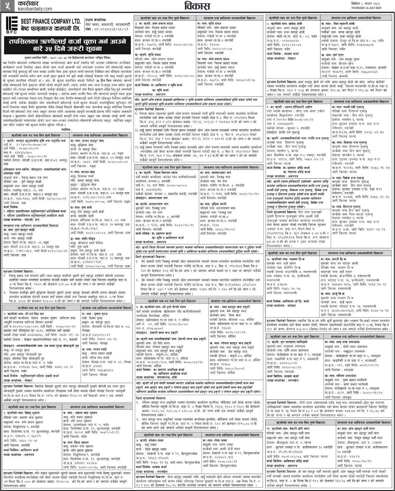ऋणीलाई कर्जा चुक्ता गर्न आउने बारे ३५ दिने सुचना